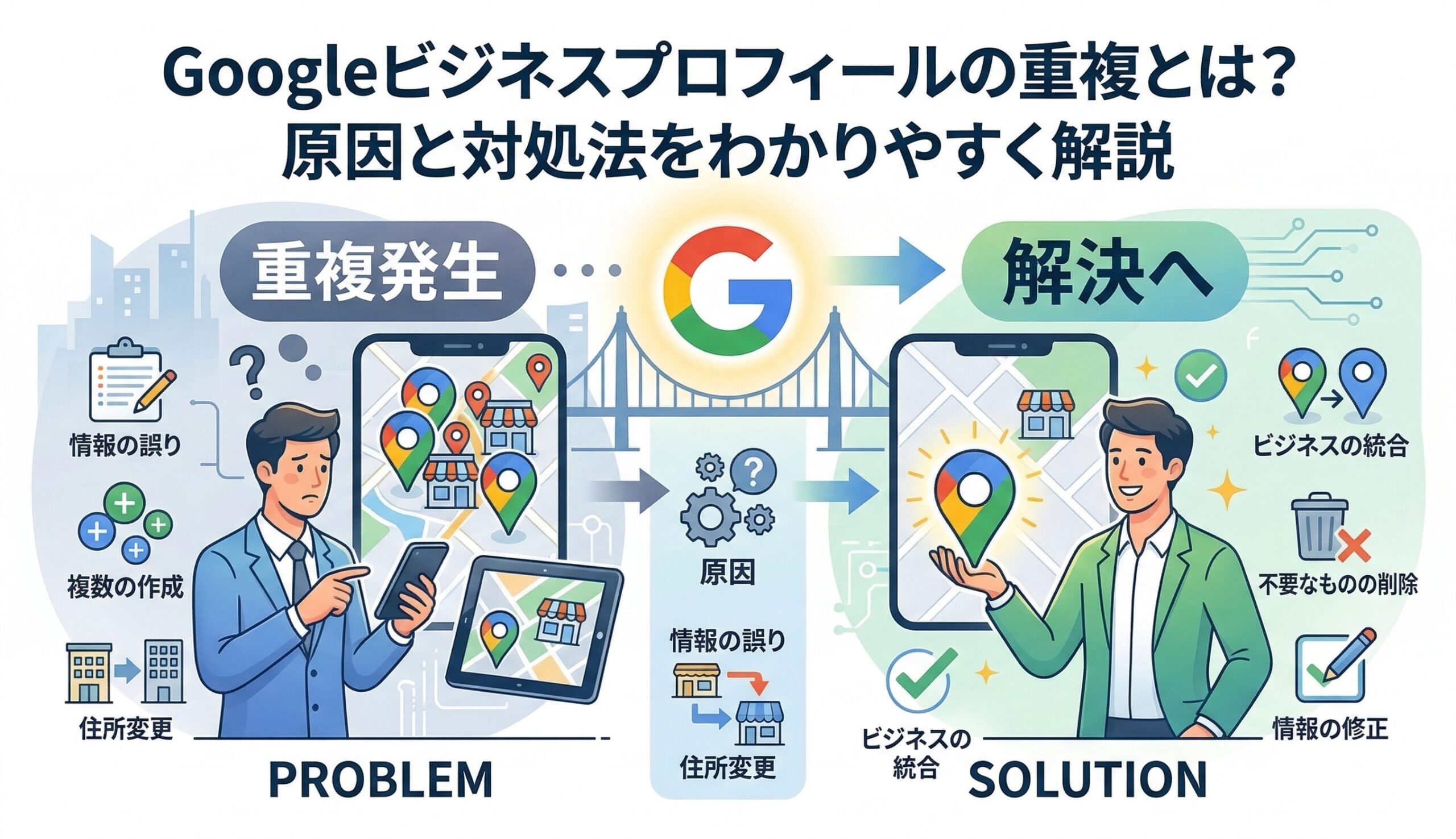 この記事では、Googleビジネスプロフィールが重複する原因と対処方法をわかりやすく解説します。