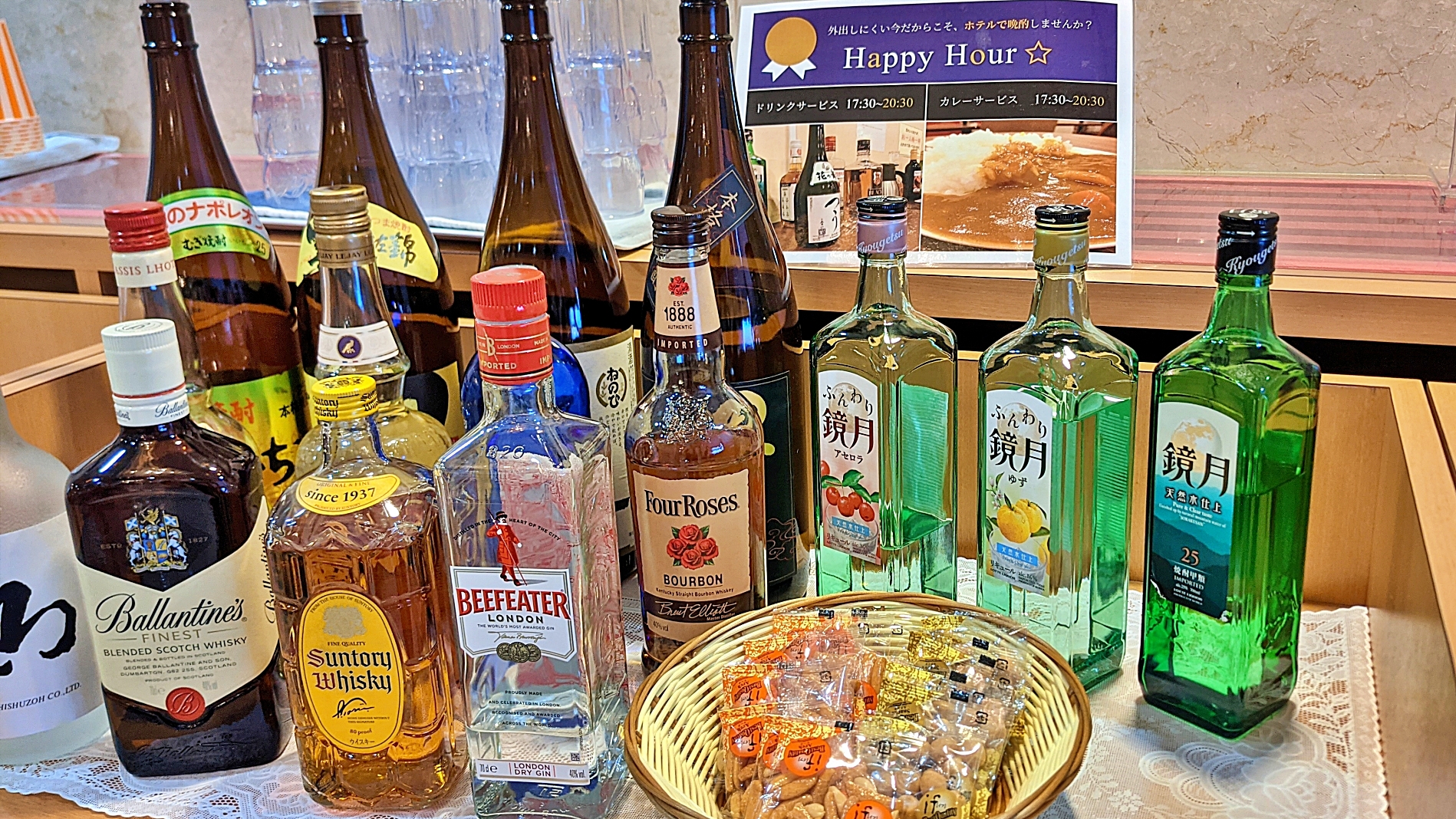 気になる無料サービスですが、午後6時から8時までは「ハッピーアワー」を開催しています!生ビールや焼酎、ウイスキーをはじめソフトドリンクの「ウェルカムドリンク」が楽しめます。