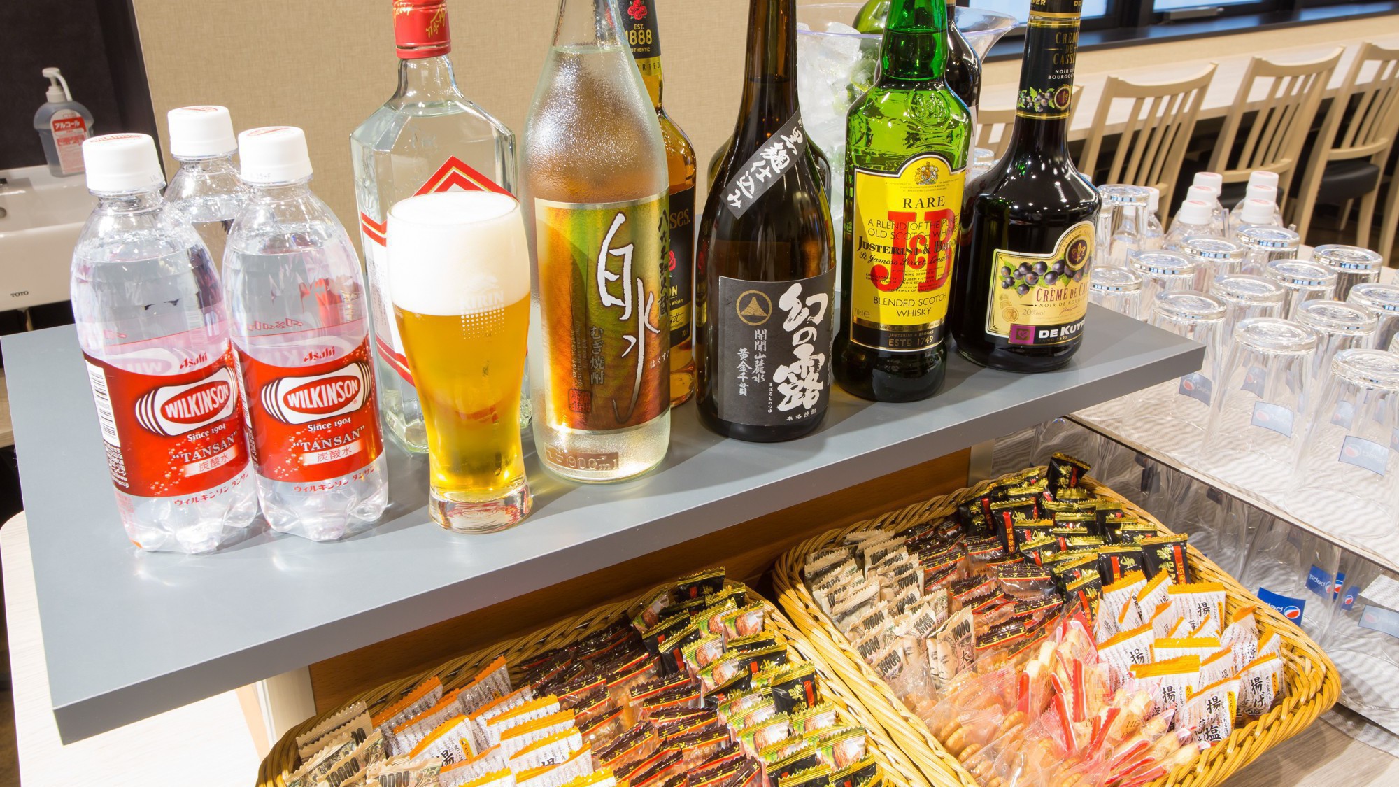 17時から楽しめるウェルカムバーは、ソフトドリンクやアルコール類などが飲み放題!