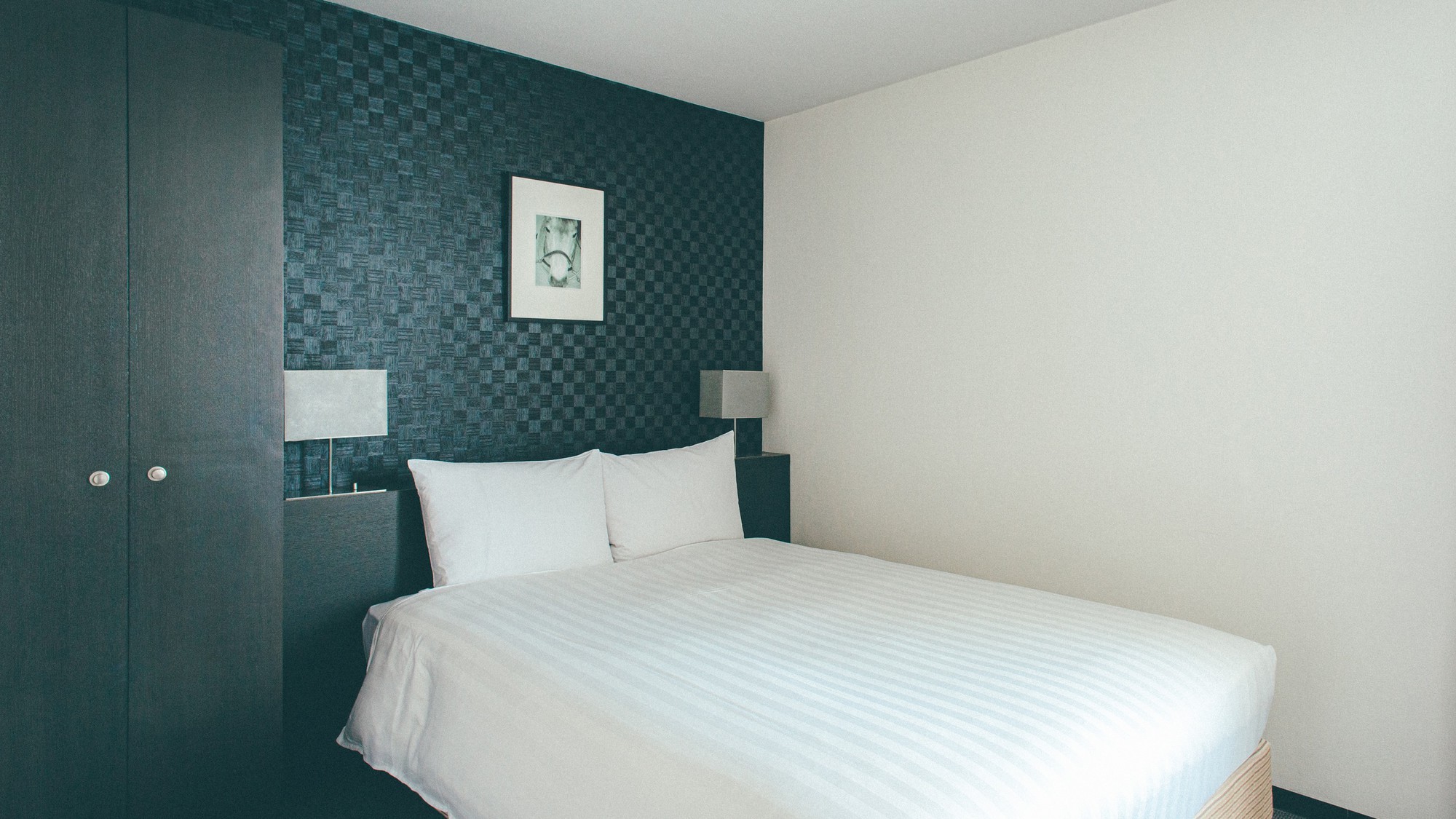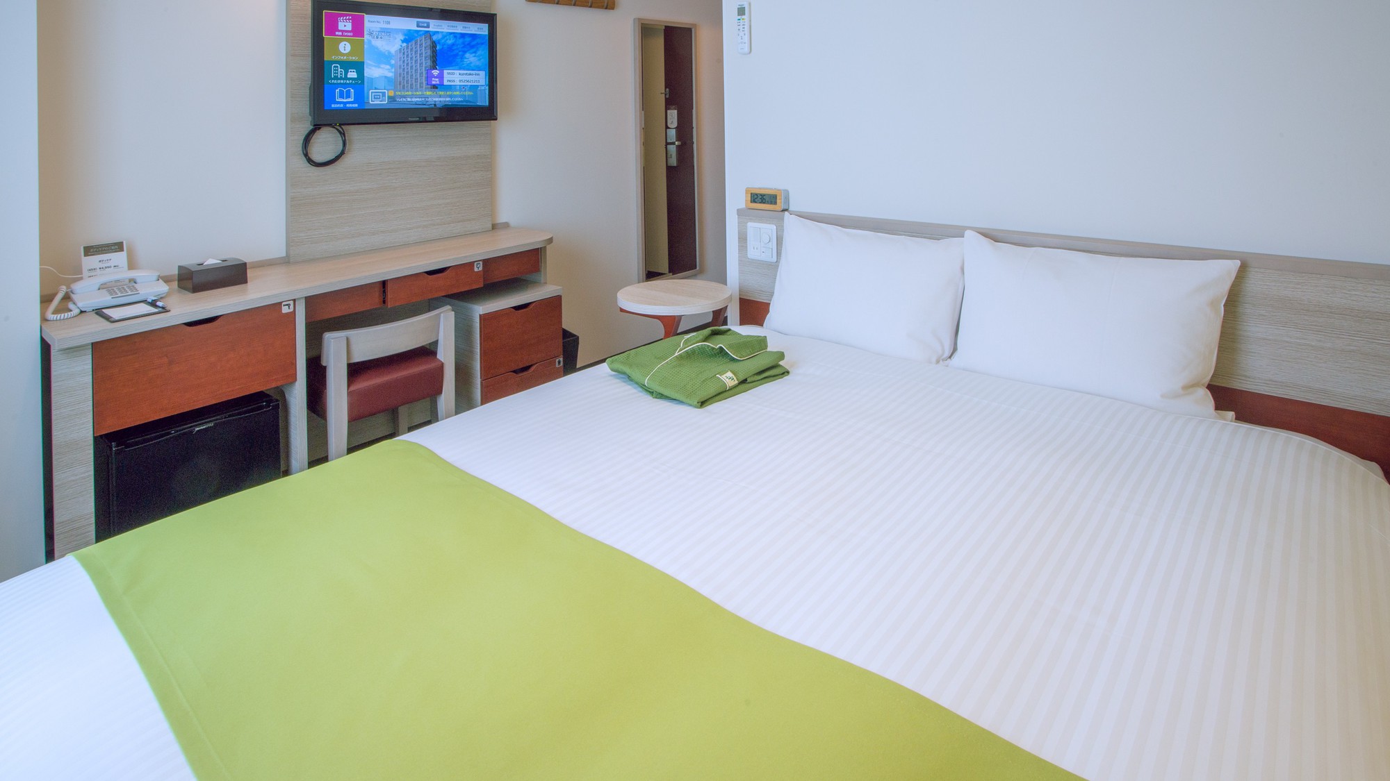 お部屋のベッドは幅が140cmあるから、しっかり体を休めることができます。