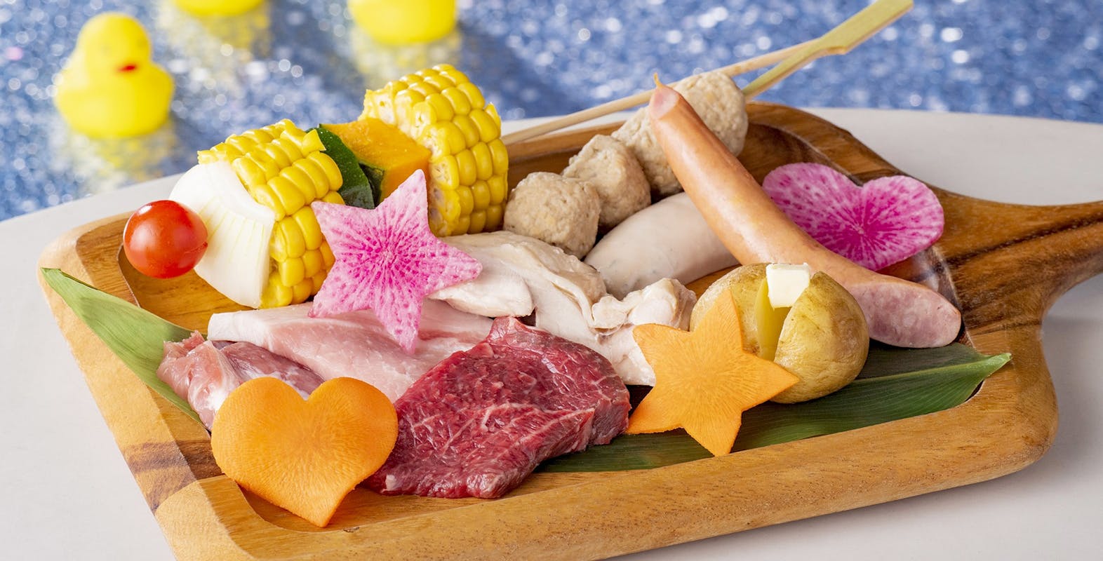 夜はホテル自慢の「肉」「海鮮」「野菜」を炭火でお好みの加減で焼くだけで本格的なバーベキューを体験!生ビールを片手に、シェフ特製のパーティーメニューもお楽しみいただけます。