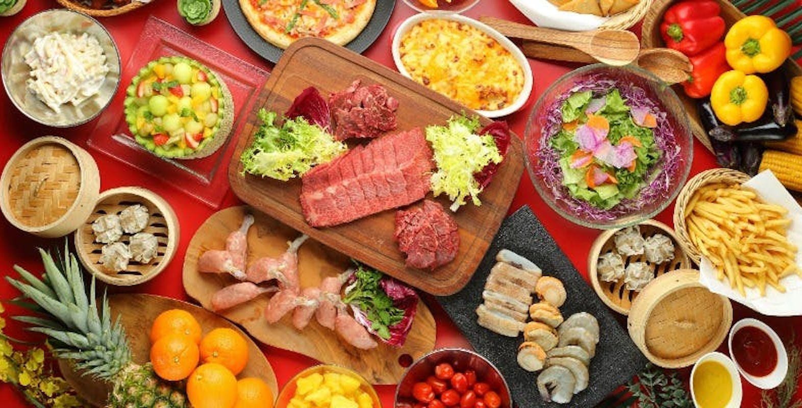 和牛や海鮮の炭火焼きに加え、ホテル特製スイーツやビュッフェも充実しています。