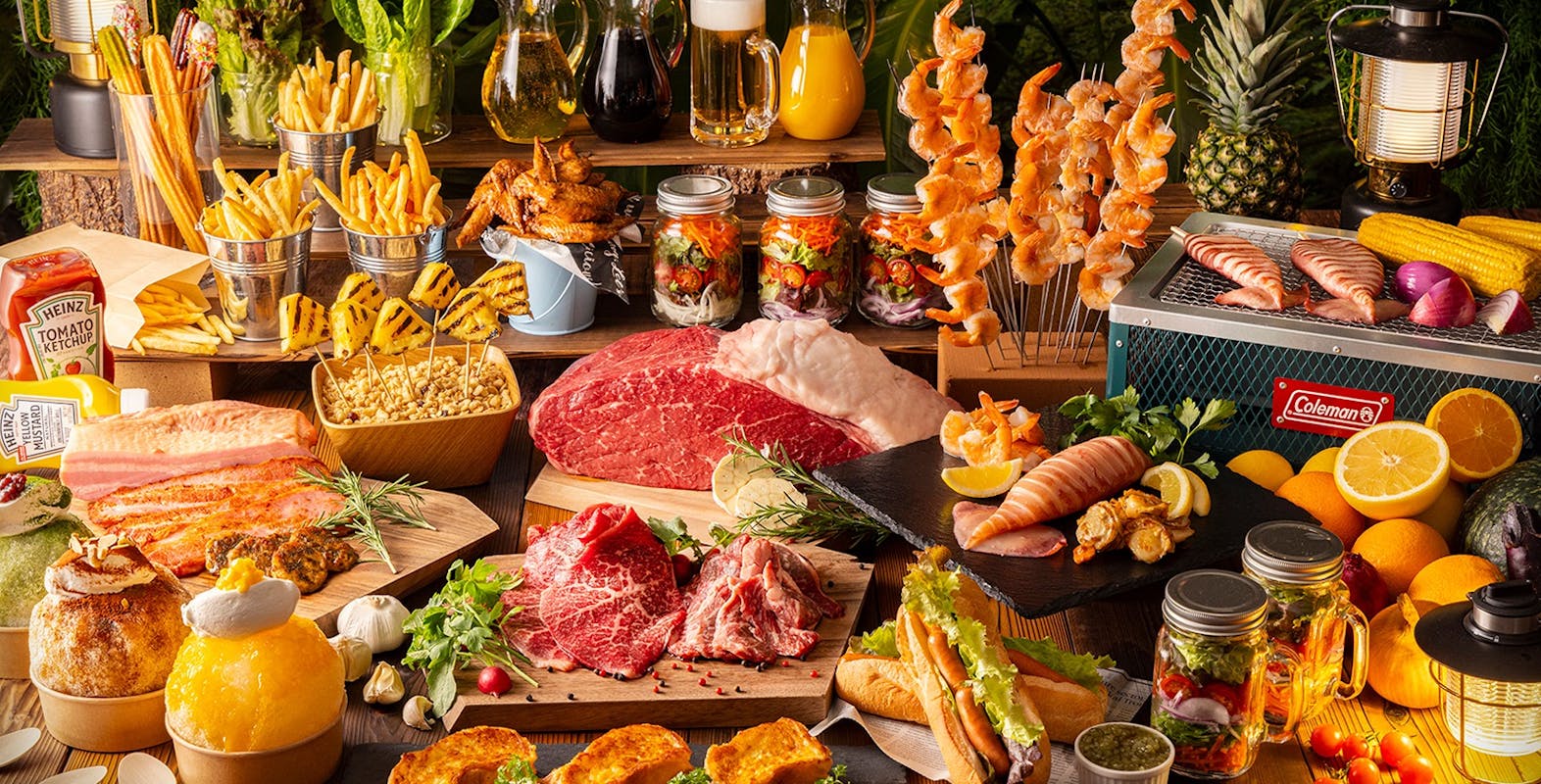 BBQアイテムからおつまみ、デザートまで食べ放題飲み放題。