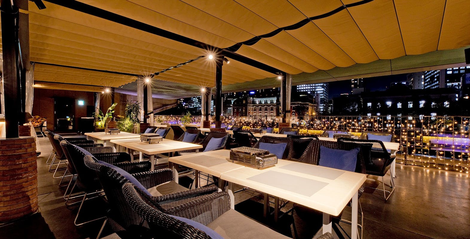 茶屋町の中心に都会の庭園テラスソファー席を構えた、大人が集う隠れ家BAR。深夜2時まで営業しているので1軒目からはもちろん、2軒目使いにもオススメ。