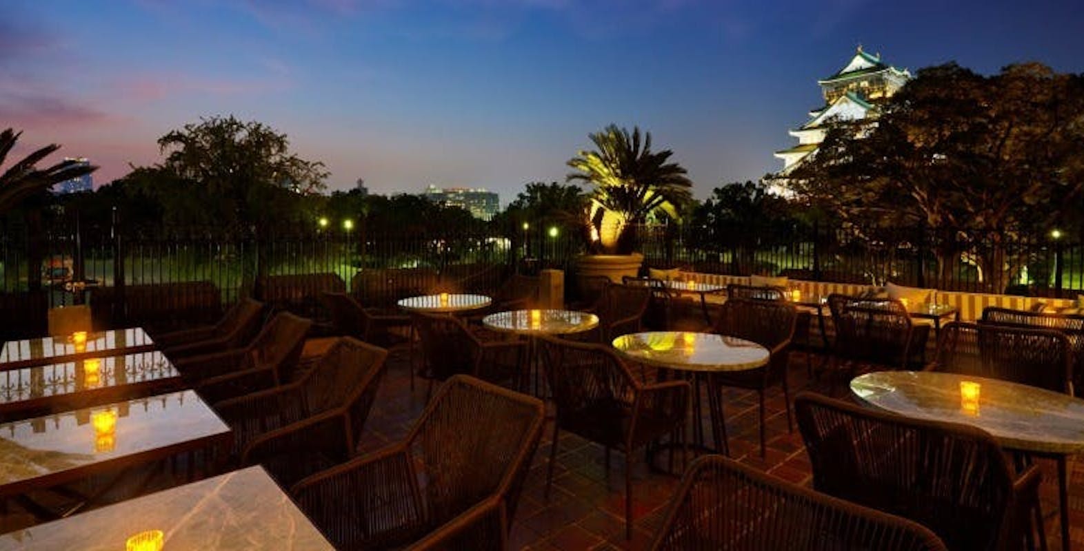 大阪城を目の前に臨む「貴賓室」のテラススペースで、ビール含む約40種のフリードリンクとこだわりのお料理が堪能できます。大阪城を目の前に臨む「貴賓室」のテラススペース楽しめるビアテラスプランをこの機会にぜひ♪解放感溢れる空間でゆっくりとビアガーデンが満喫できます。