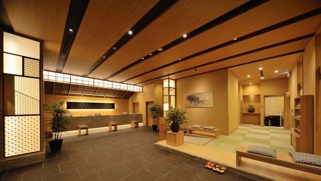 2つめの違いは、「天然温泉 富山 剱の湯 御宿 野乃」は、全館畳敷きとなっていて、ホテルの玄関で靴を脱ぐタイプとなっています。