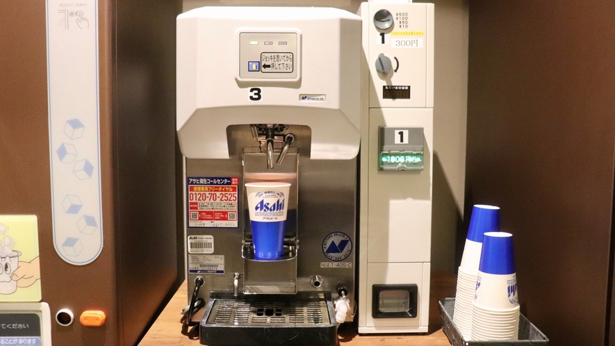 2つのホテルともに、館内に自動販売機がありますが、「天然温泉 剱の湯 ドーミーイン富山」には、なんと1杯300円の生ビールサーバーがあります!