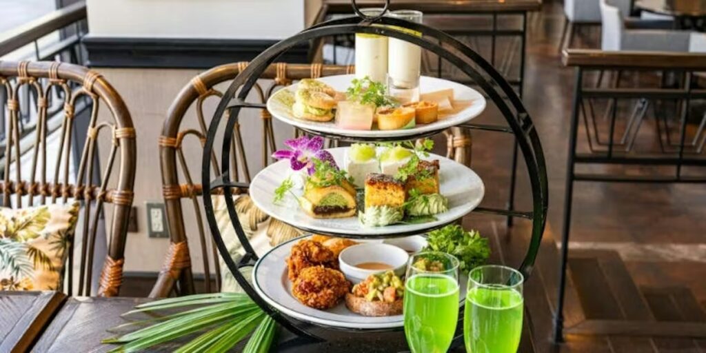 抹茶のミルクレープや白あんモンブラン、わらび餅パフェなど、香り豊かなスイーツが並ぶ華やかな3段スタンドに加え、ブリオッシュバーガーやモチコチキンのセイボリーも充実。カフェフリー付きで、ゆったりと特別な午後をお楽しみください。