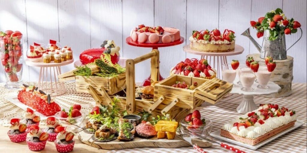 桜薪で焼き上げた香ばしい肉料理と、前菜・サイドを詰めたピクニックボックスに加え、10種の苺スイーツが楽しめる贅沢な内容。甘党でない方にもおすすめの新感覚アフタヌーンティーです。