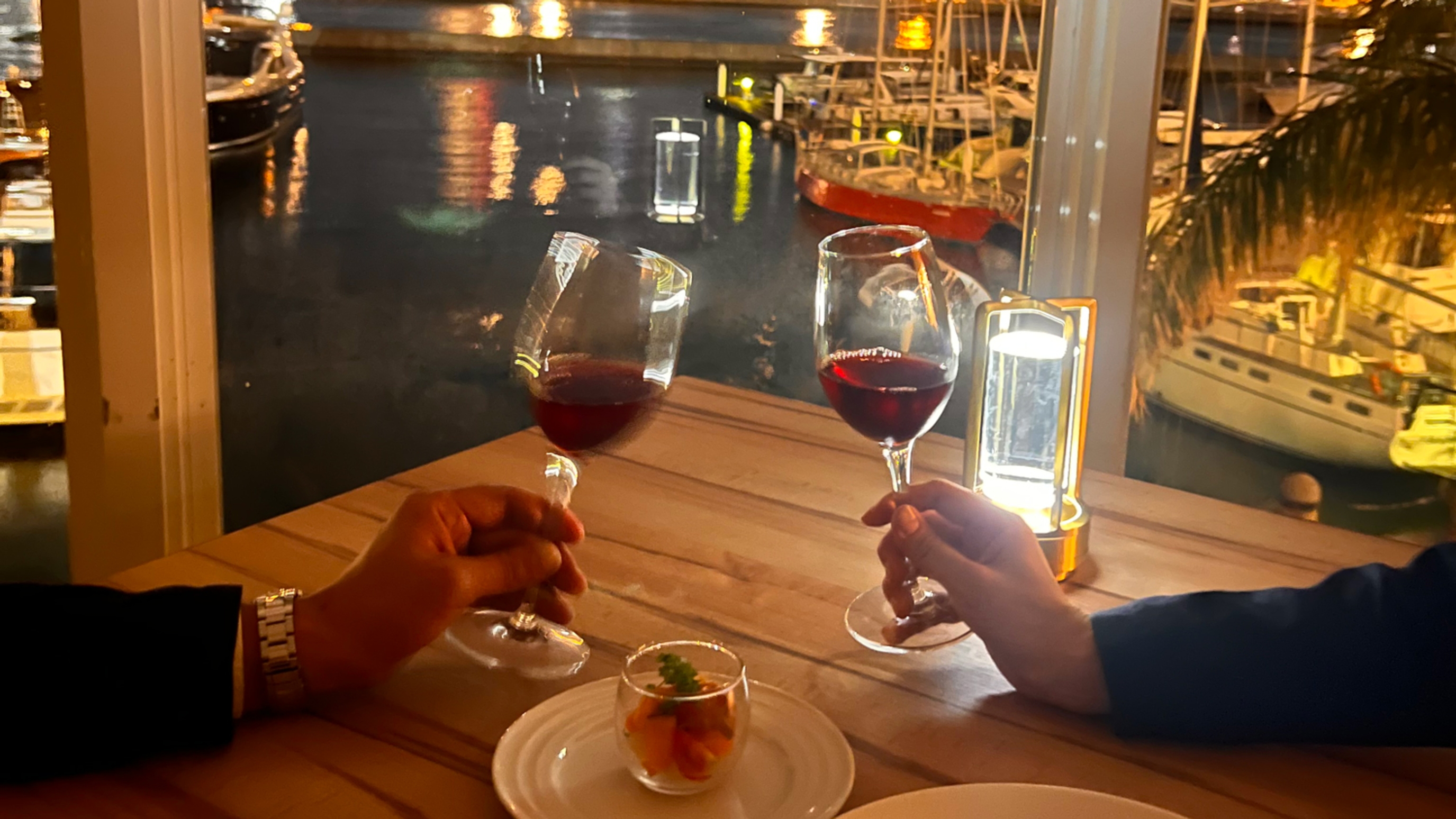 チェックイン時には、ふわふわパンケーキとドリンクでスタート!夜は夜景とヨットハーバーを眺めながら大人の夜を過ごすことができます。