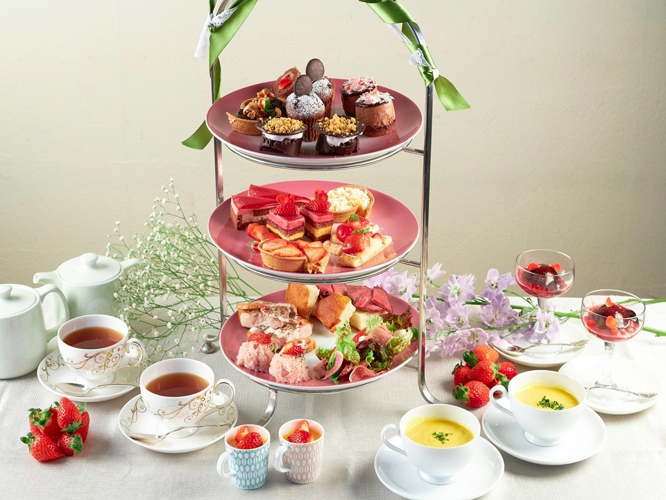 苺×ショコラの多彩なスイーツに、和牛ローストビーフや苺リゾットなど本格セイボリーも揃う満足感たっぷりの内容です。
