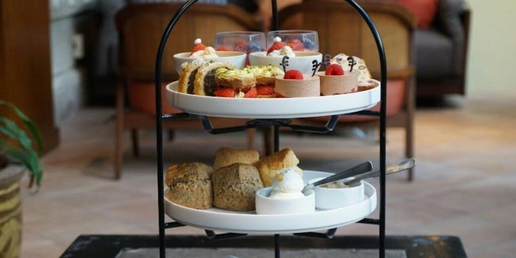 お店の名物大人のアフタヌーンティーセットをご紹介。