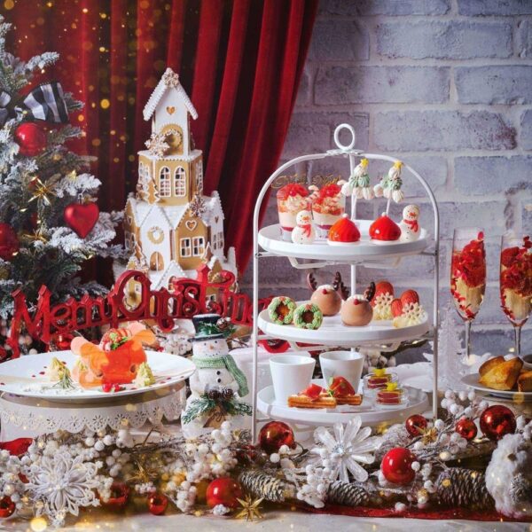 トナカイやサンタ帽子など、遊び心たっぷりのスイーツが並ぶ華やかなアフタヌーンティーが登場。