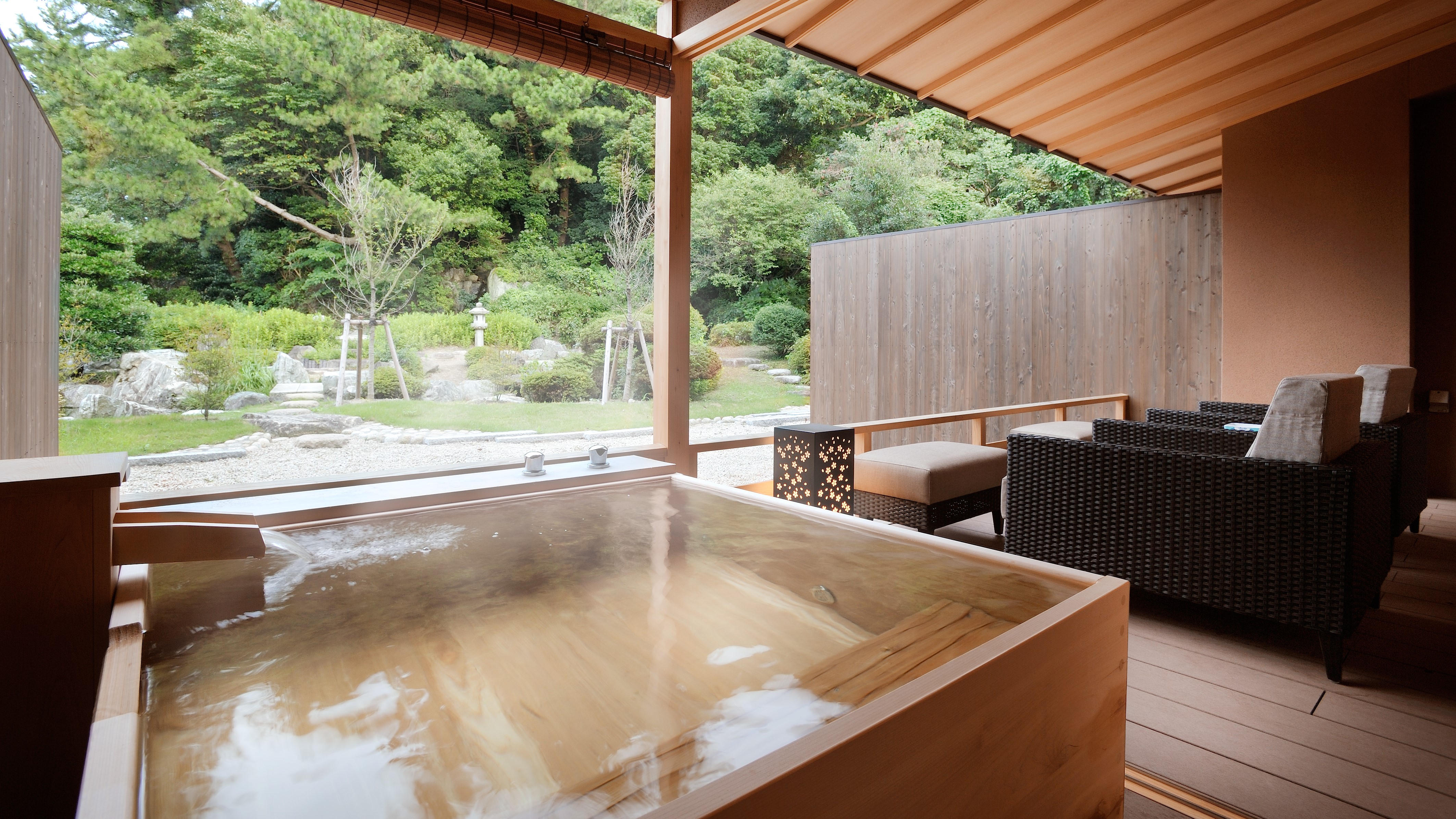 潮路亭の特別室は、露天風呂(温泉ではありません)がついているので、お部屋でまったりしたいという方にもおすすめです。