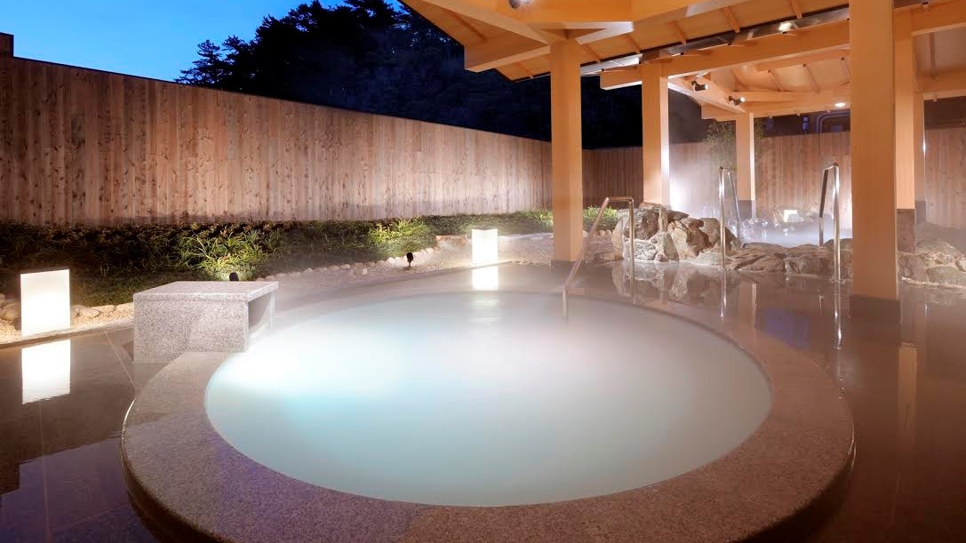この大浴場は、ミキモト コスメティックスとのコラボで、日本初の「パールオーロラ風呂」となっていて、真珠由来成分が配合されています。