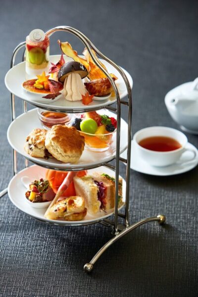 栗やかぼちゃ、さつま芋、りんごなど、秋の実りをぎゅっと詰め込んだ贅沢なアフタヌーンティーセット。
