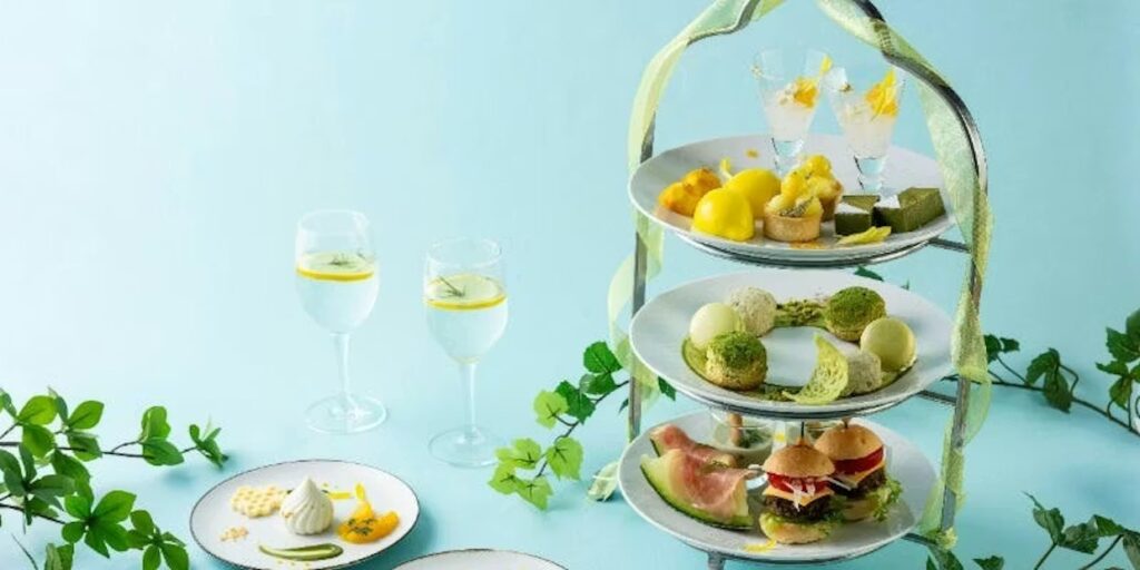 抹茶と柑橘が織りなす、爽やかな初夏のアフタヌーンティー。滋賀県産の土山抹茶や朝宮煎茶を使ったスイーツやスコーンに、シトラスやジャスミンの香りを添えた軽やかな味わいが魅力です。近江牛バーガーや生ハムメロンなどのセイボリーも充実。フリーフロー付きで、光あふれる空間で優雅なひとときをお楽しみください。