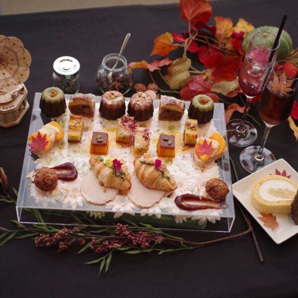 柿とチーズのタルティーヌや栗かぼちゃの濃厚プリンなど、秋の味覚を贅沢に使用したスイーツやセイボリーが楽しめます。
