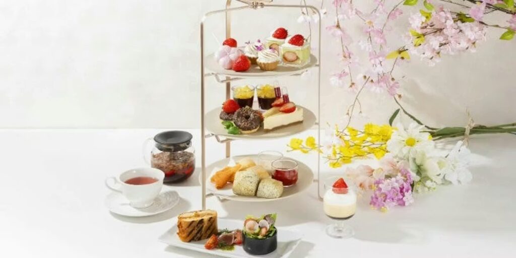 主役は苺とピスタチオのフレジエに、瀬戸内レモンタルトや桜スイーツが華やかさを添えます。キューバサンドやスパイス香る春巻き、カツオのカルパッチョなど本格セイボリーも充実。紅茶のフリーフローとともに、最後まで飽きない贅沢なひとときをお楽しみください。